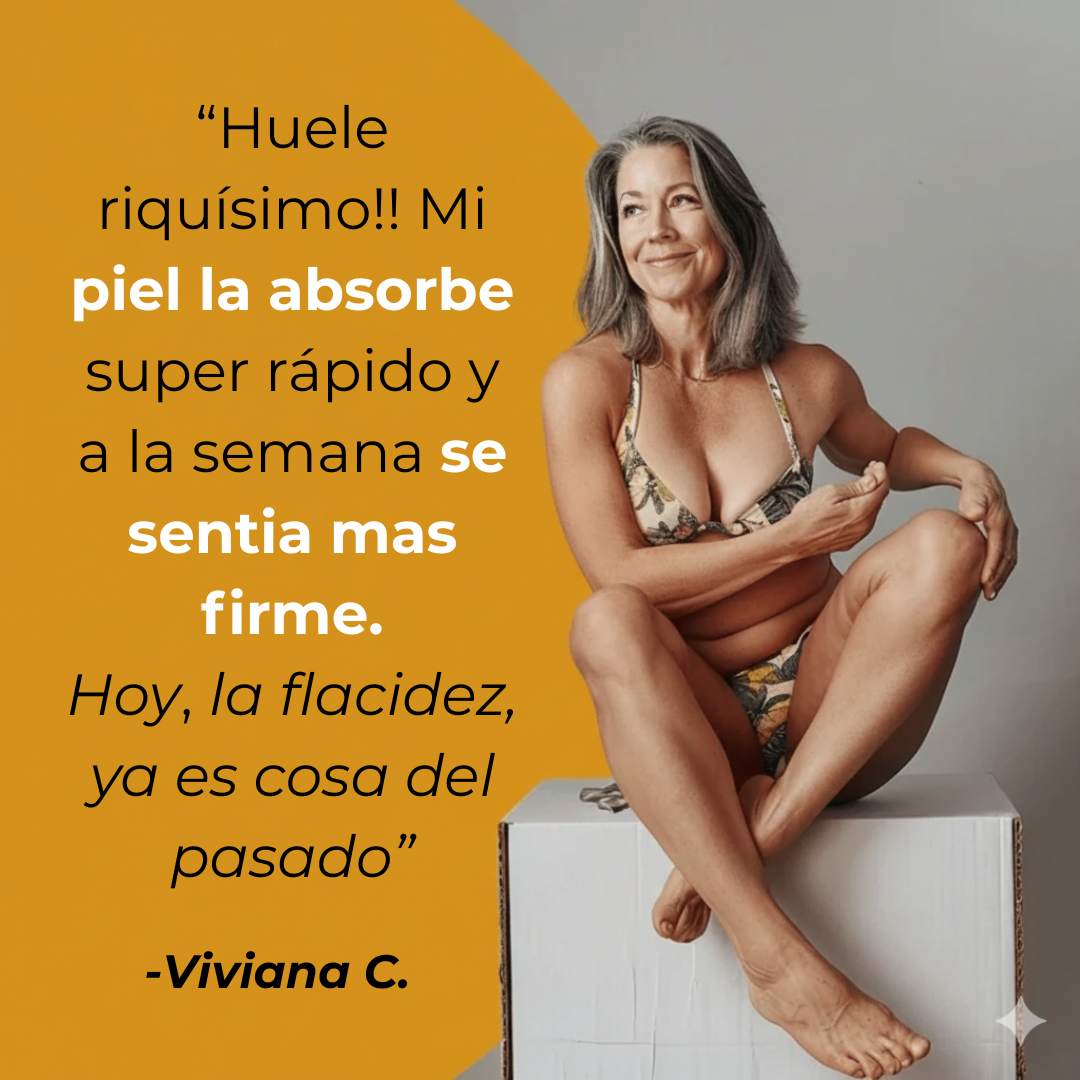 Aplicala 1–2 veces por día en la zona (brazos, abdomen, muslos, escote).