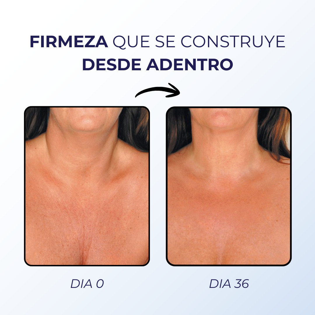 Activa los procesos de firmeza internos en la piel para mejorar textura, elasticidad y uniformidad, sin gastar en tratamientos costosos.