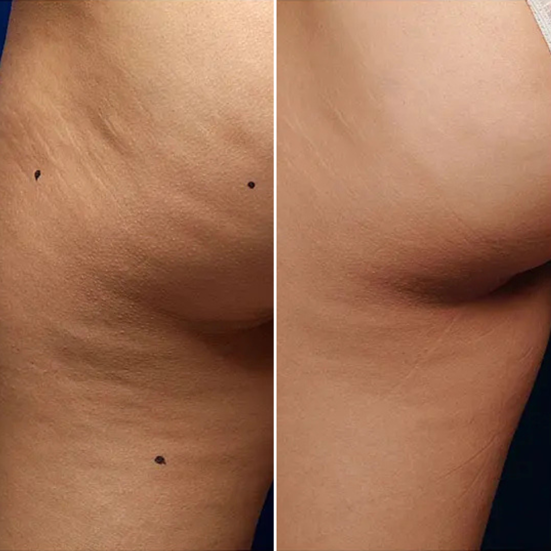 No es un tratamiento médico para eliminar estrías o celulitis profundas, pero al mejorar la elasticidad y uniformidad, muchas clientas notan que la piel se ve visualmente más pareja.