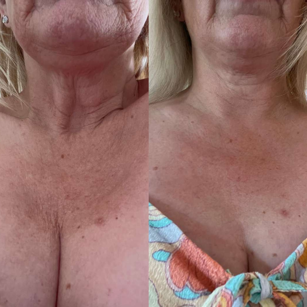 En la mayoría de casos, lo primero que notás es textura más lisa y piel más “rellena” en 7–14 días (especialmente en escote y brazos).