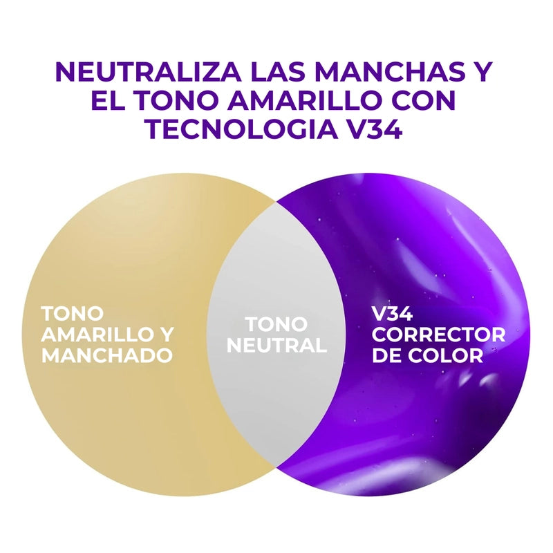Nuestro suero utiliza la tecnología de corrección de color V34 para neutralizar los tonos amarillos, revelando instantáneamente una sonrisa más brillante y deslumbrante. ¡Es la magia púrpura para tus dientes!